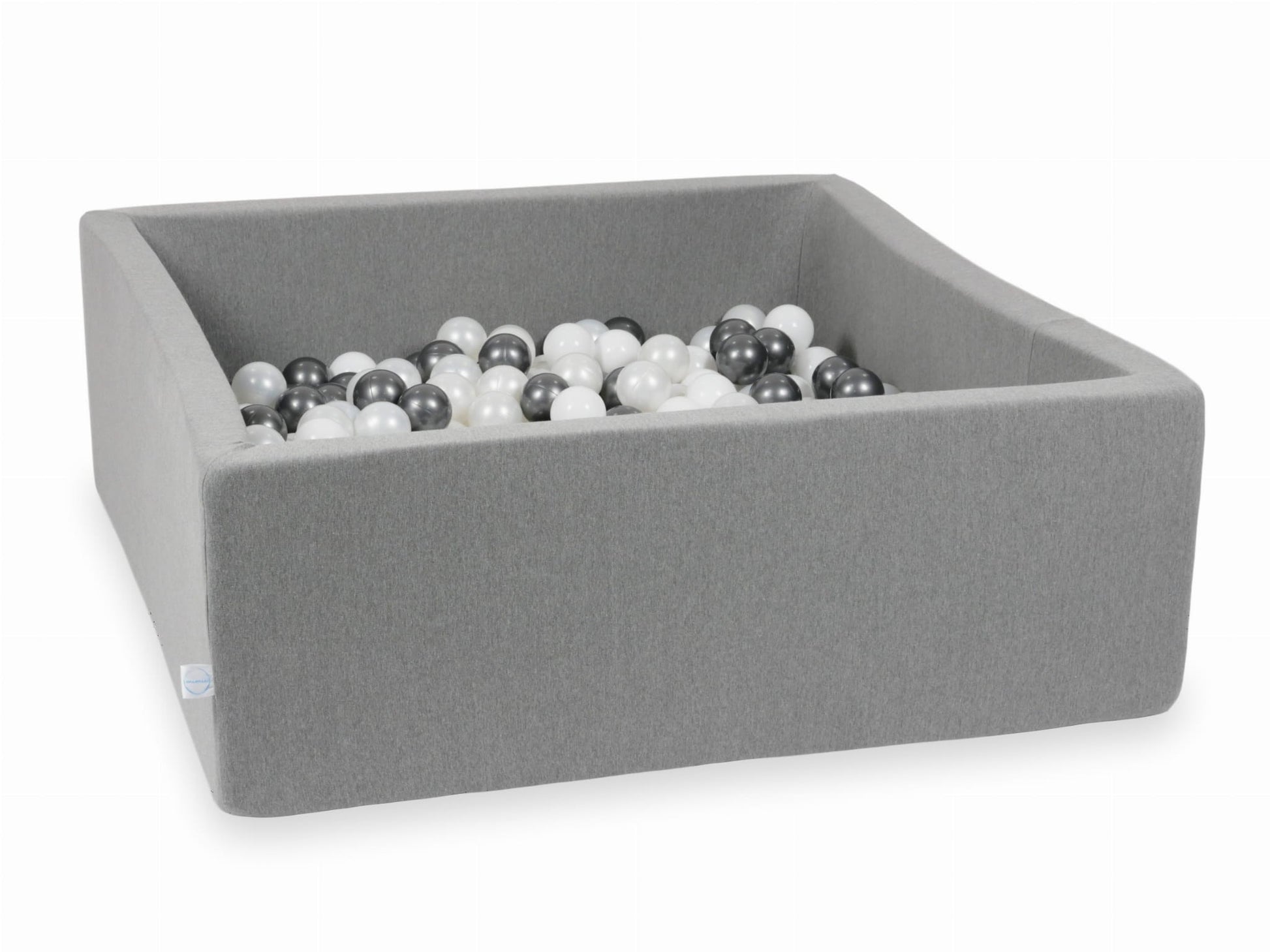 Piscine à Balles 110x110x40 grise avec balles 600 pcs (blanc, perle, graphite métallique)