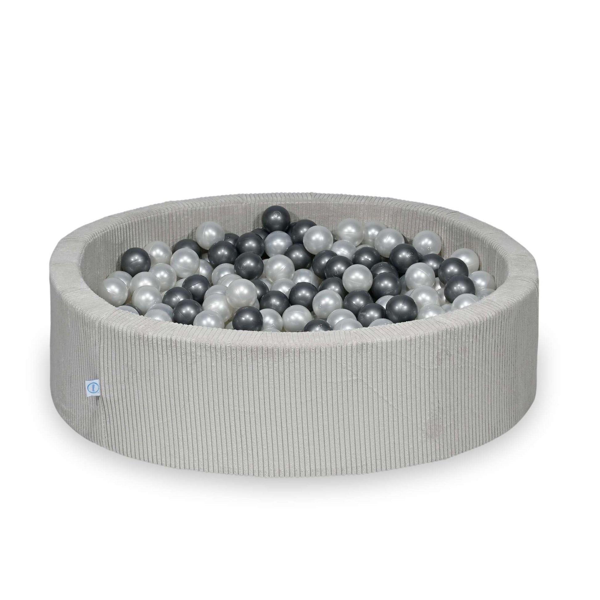 Piscine à balles ronde en velours côtelé gris, 110x30cm – 400 balls (nacré, argenté)