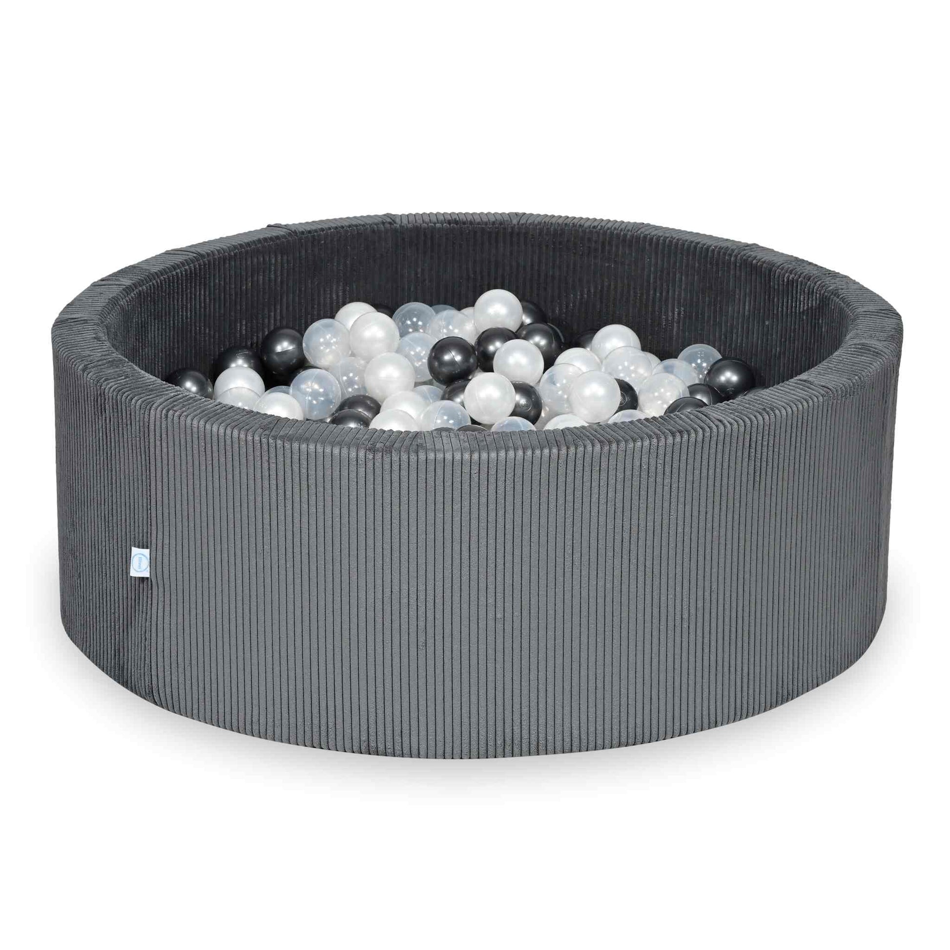 Piscine à balles ronde en velours côtelé graphite, 110x40cm – 500 balls (transparent, nacré, graphite métallisé)