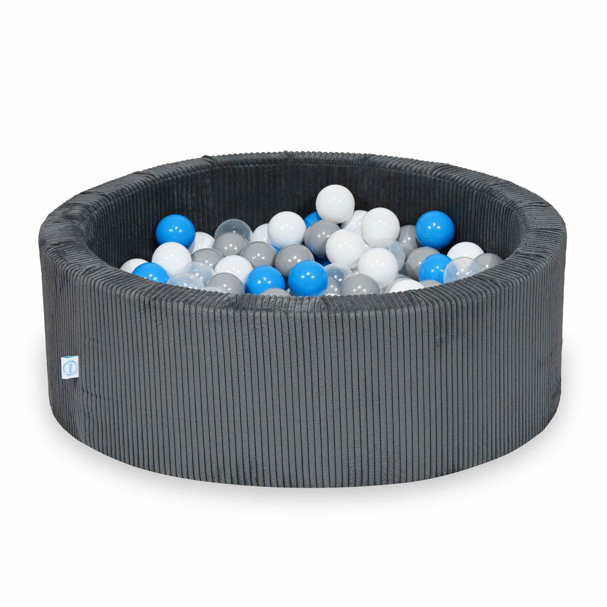 Piscine à balles ronde en velours côtelé graphite, 90x30cm – 200 balls (transparent, blanc,gris, bleu ciel)